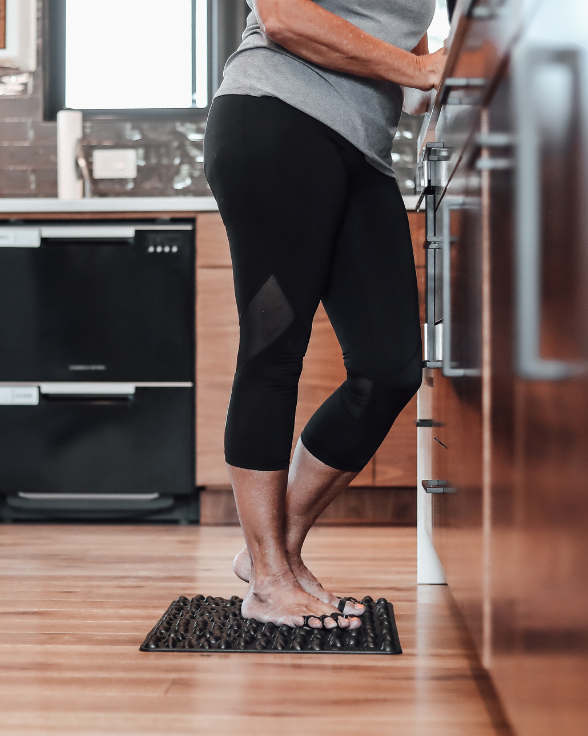 Wearing stiff shoes all day restricts natural foot movement, limiting how the feet and ankles are meant to function. Using tools like the Origo Board to build stronger, more stable ankles, and a rock mat to restore sensory awareness, helps strengthen the feet and allows them to move freely, the way they were designed to.